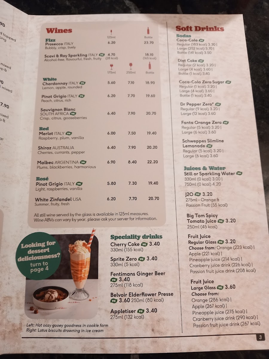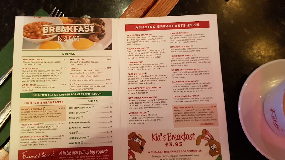 In terms of beverages, Frankie & Benny's offers a wide selection of drinks, including classic cocktails, mocktails, and specialty coffees, perfect for pairing with any meal. The dessert menu also shines, with indulgent options like New York cheesecake and chocolate fudge cake that are sure to satisfy any sweet tooth.